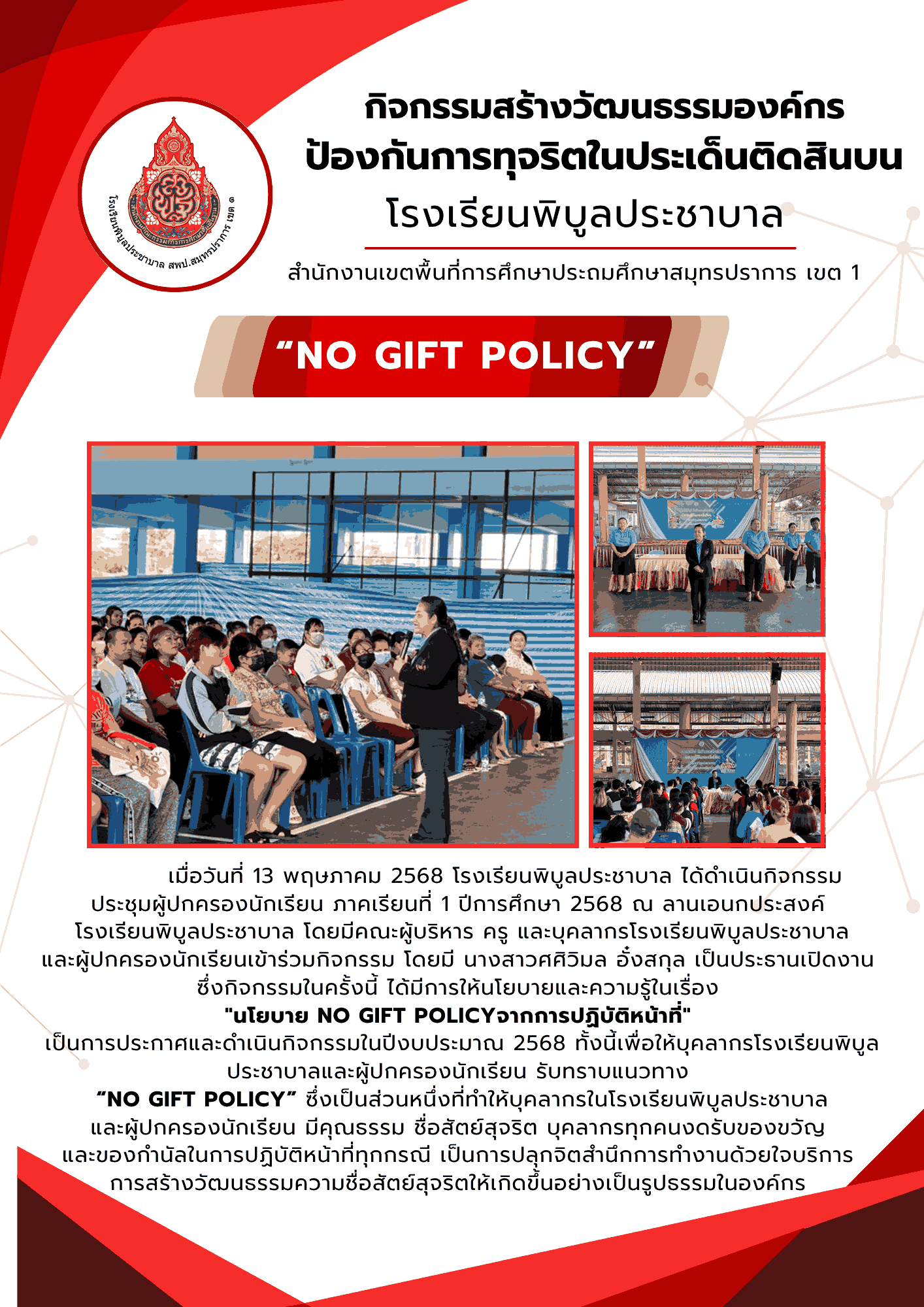 การจัดกิจกรรมสร้างวัฒนธรรม No Gift Policy