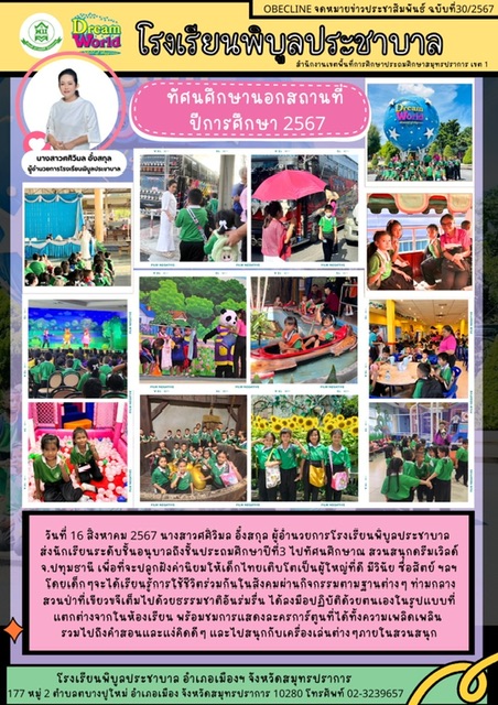 ทัศนศึกษานอกสถานที่ ระดับชั้นอนุบาลและชั้นประถมศึกษาปีที่1-3